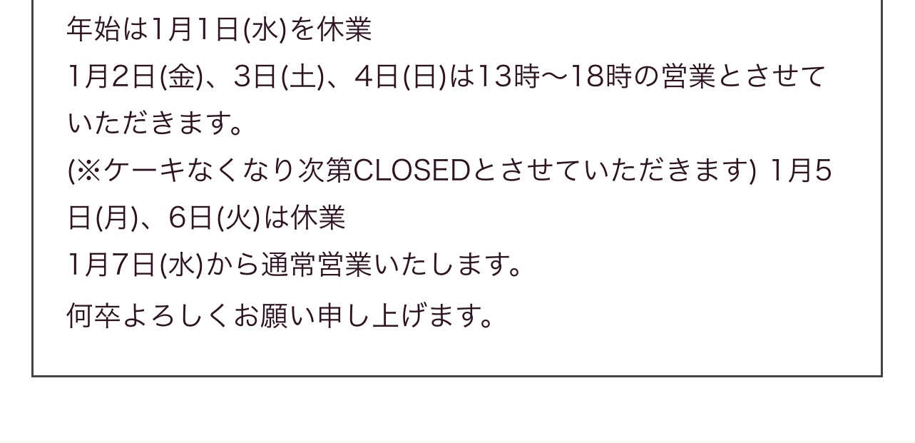 2025-12-31DUOMO café ご案内ドゥオーモ カフェ 2025年今年も一日となりました。 ご愛顧誠にありがとうございました 2026年変わらずご愛顧のほどよろしくお願い申し上げます ※ みなさまには申し訳ございません、ケーキ無くなり次第 営業を終了させて頂いております。 よろしければこの記事をシェアしてください